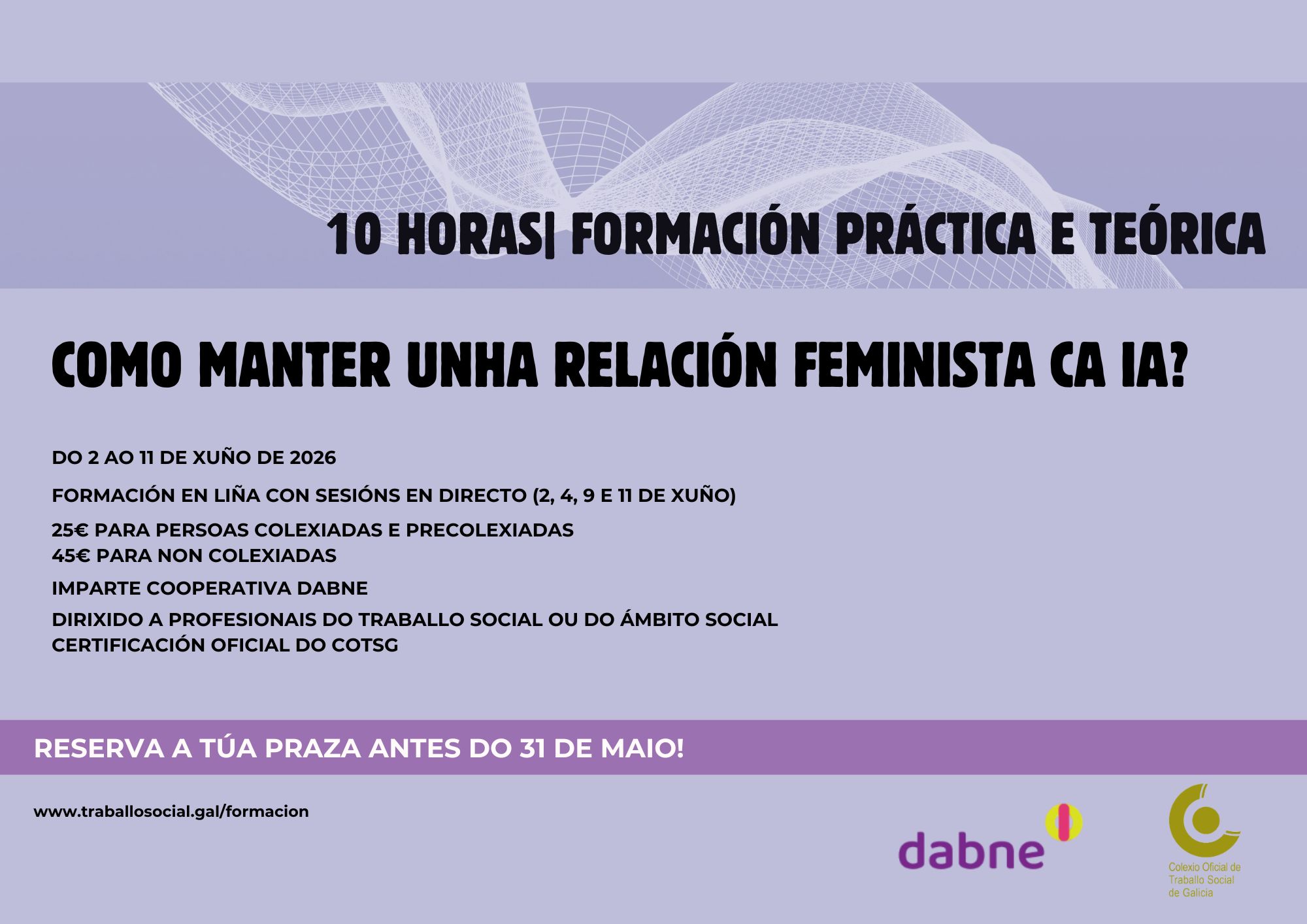 Se eres colexiado/a de outro Colexio Profesional de Traballo Social podes acceder ao prezo para persoas colexiadas. Para iso ponte en contacto connosco no email: info@traballosocial.gal